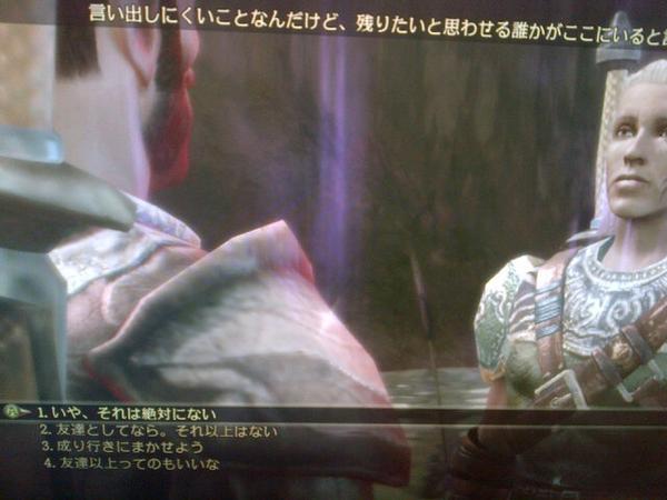 このますエフェもですがバイオウェアのゲームは、同性・異星人など無節操に?関係持てますが、この二股はさせない、あたりが非常にストイックですね・・・・