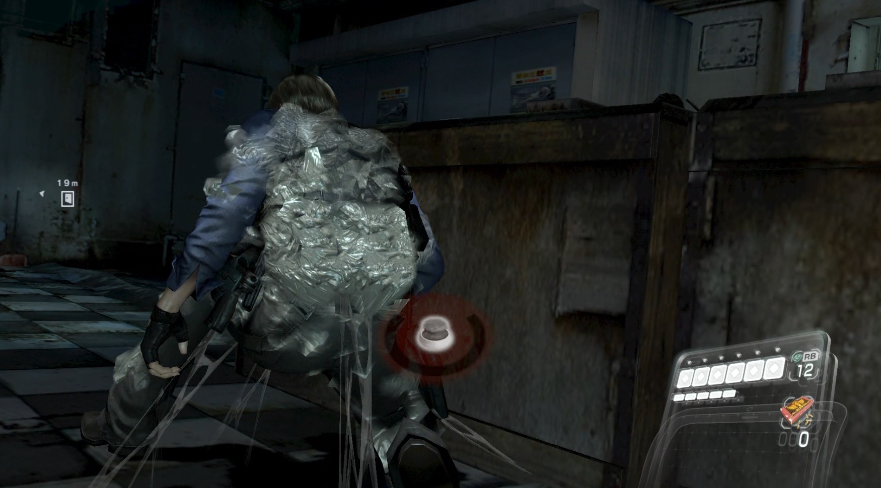 白い糸に絡まるレオン(この白い糸を出す敵はエイダ編とクリス編にしかいないのでレオンで見られるのはなんか新鮮なきがしました、すごく卑猥です