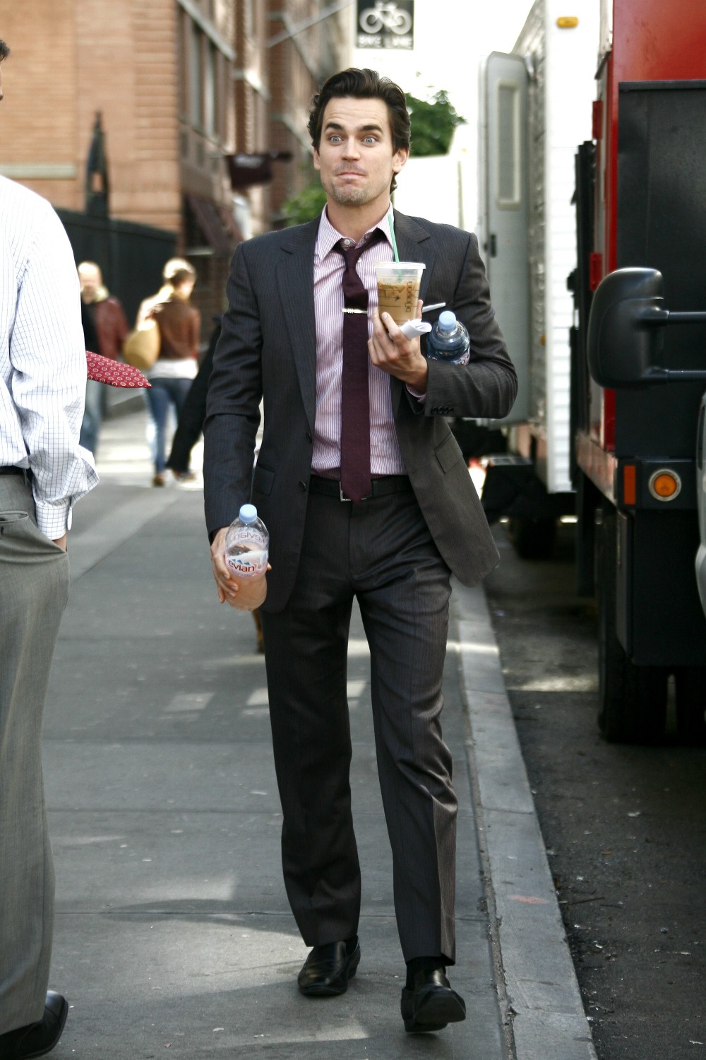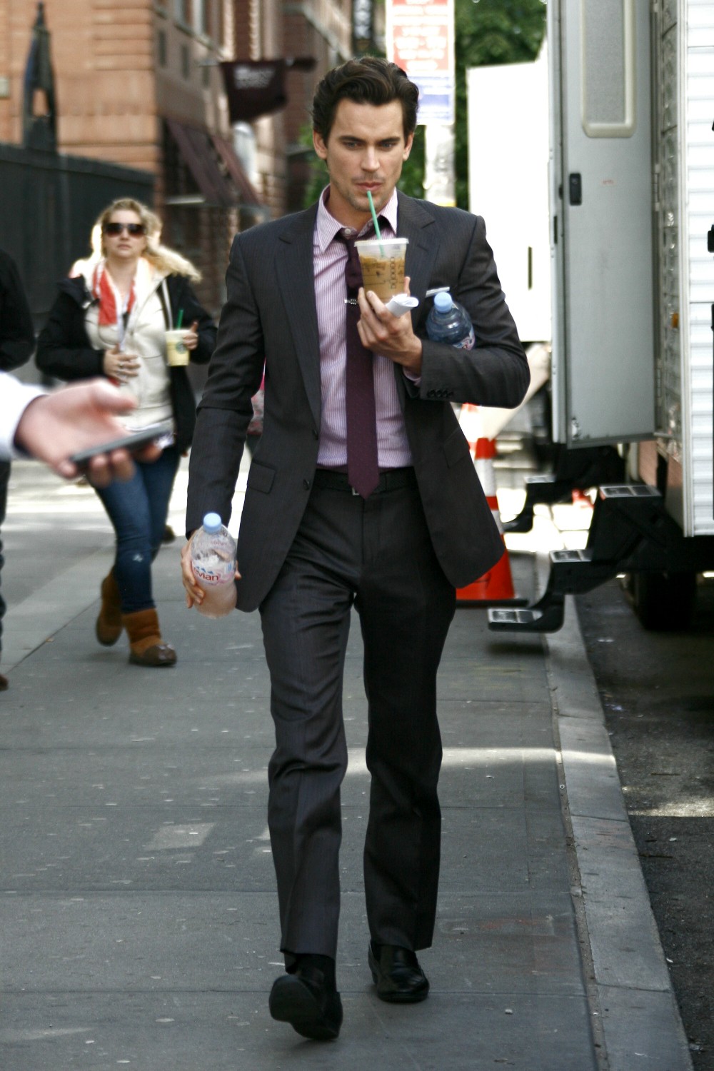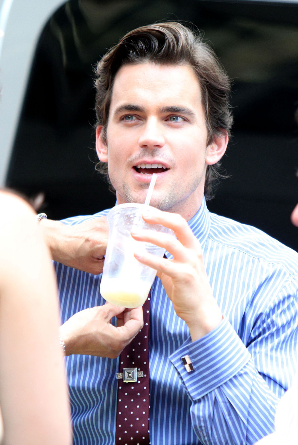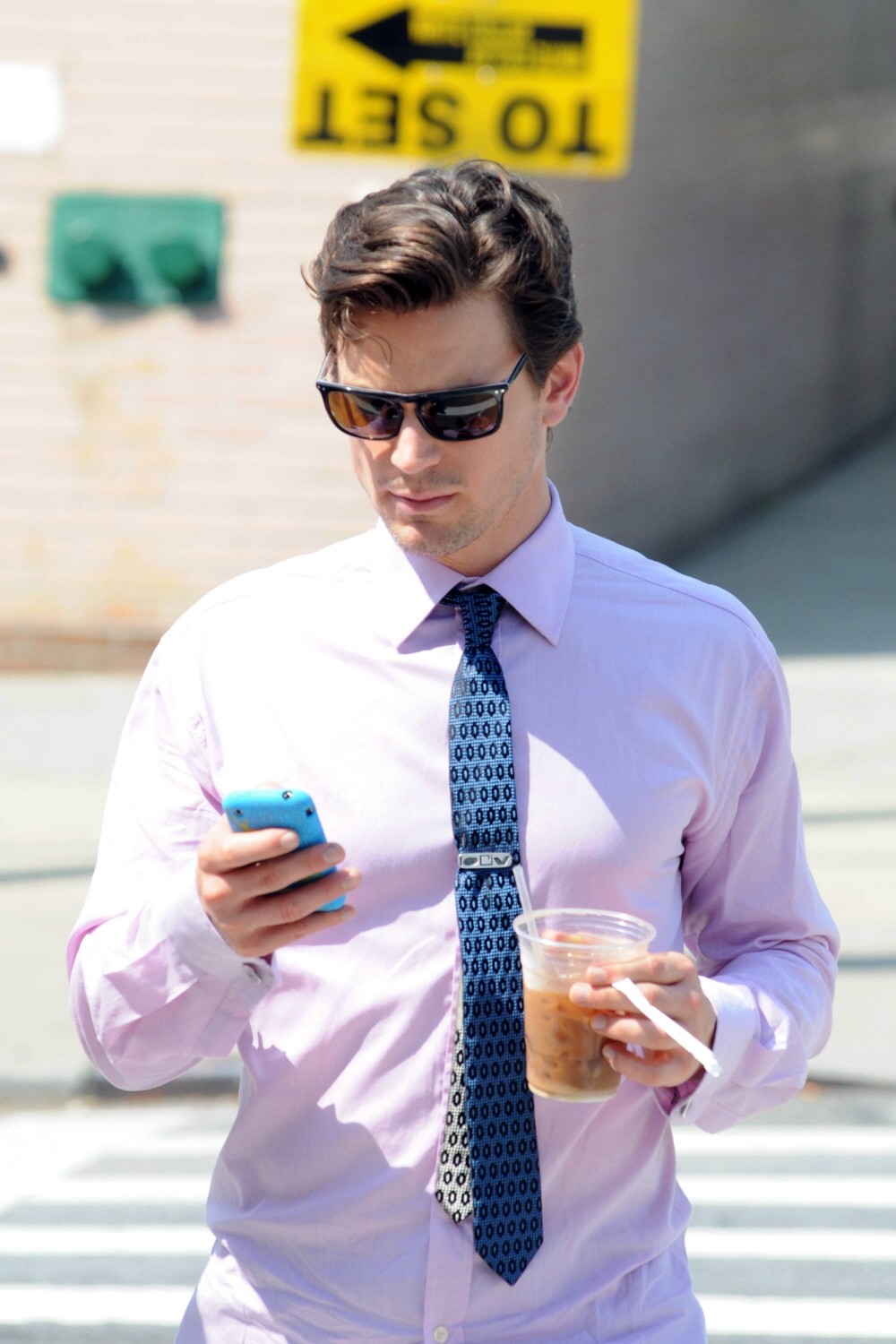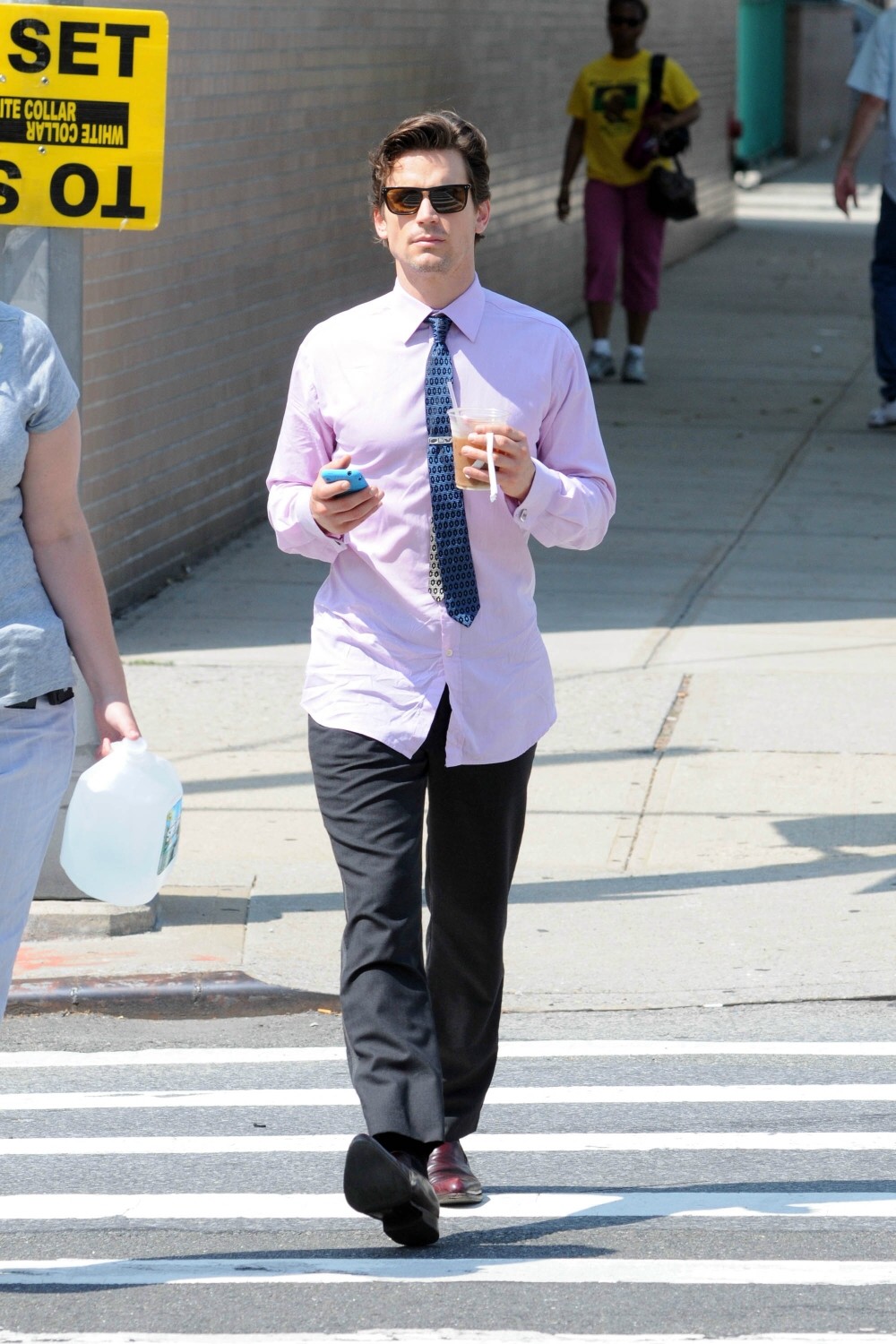 めずらしく、シャツをインしてないマット、片手にスタバみたいなカップ+片手にアイフォン+サングラスというのはもはや彼の撮影現場での風物詩^^(in自分