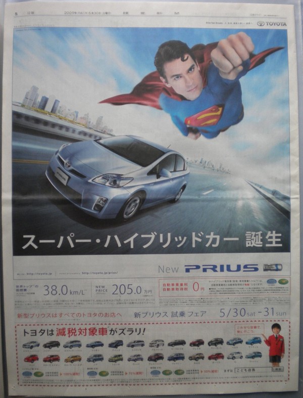 前にCMで紹介した例のプリウスの新聞広告を、WCの監督さんが持っていて自分のツイピクに上げて「こwwれわwwwww」といって爆笑してました・・っていう